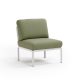 Sillón sin brazos de resina de fibra de vidrio y acolchados. Se puede comprar individualmente o diseñar como elemento central en composiciones más amplias previstas por la colección de sillas modulares Komodo.