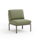 Sillón sin brazos de resina de fibra de vidrio y acolchados. Se puede comprar individualmente o diseñar como elemento central en composiciones más amplias previstas por la colección de sillas modulares Komodo.
