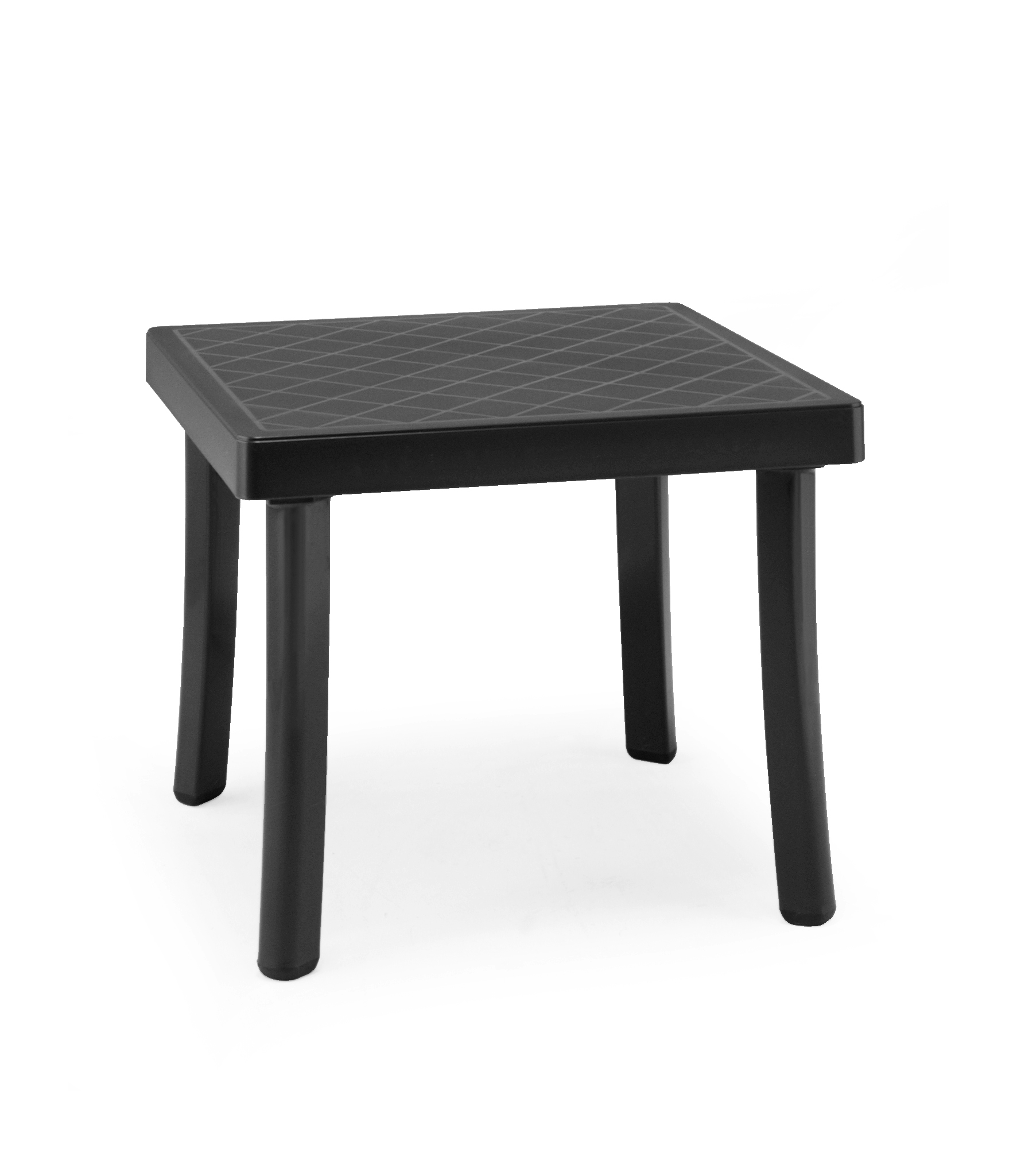 Mesita cuadrada en polipropileno tratado anti-UV y teñido en masa.