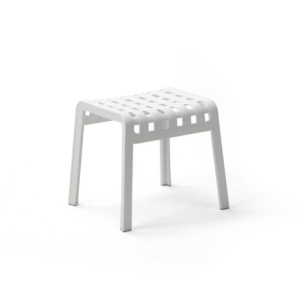 Poggio es un reposapiés o taburete de exterior de resina de fibra de vidrio de exterior caracterizado por una estructura perforada y decorada con un motivo de cuadros que sabe otorgar un toque de estilo unconventional a los ambientes outdoor. Presentado como reposapiés funcional de la nueva colección de sillones relax Folio, con la cual comparte colores y acolchados, Poggio es un refinado complemento de decoración que se puede comprar por separado.