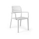 Silla sin brazos de resina de fibra de vidrio con unas líneas pulidas y esenciales. La estructura es un tubular sin interrupciones con ángulos y perfiles redondeados donde el asiento y el respaldo son todo uno. Ligera, manejable y apilable.