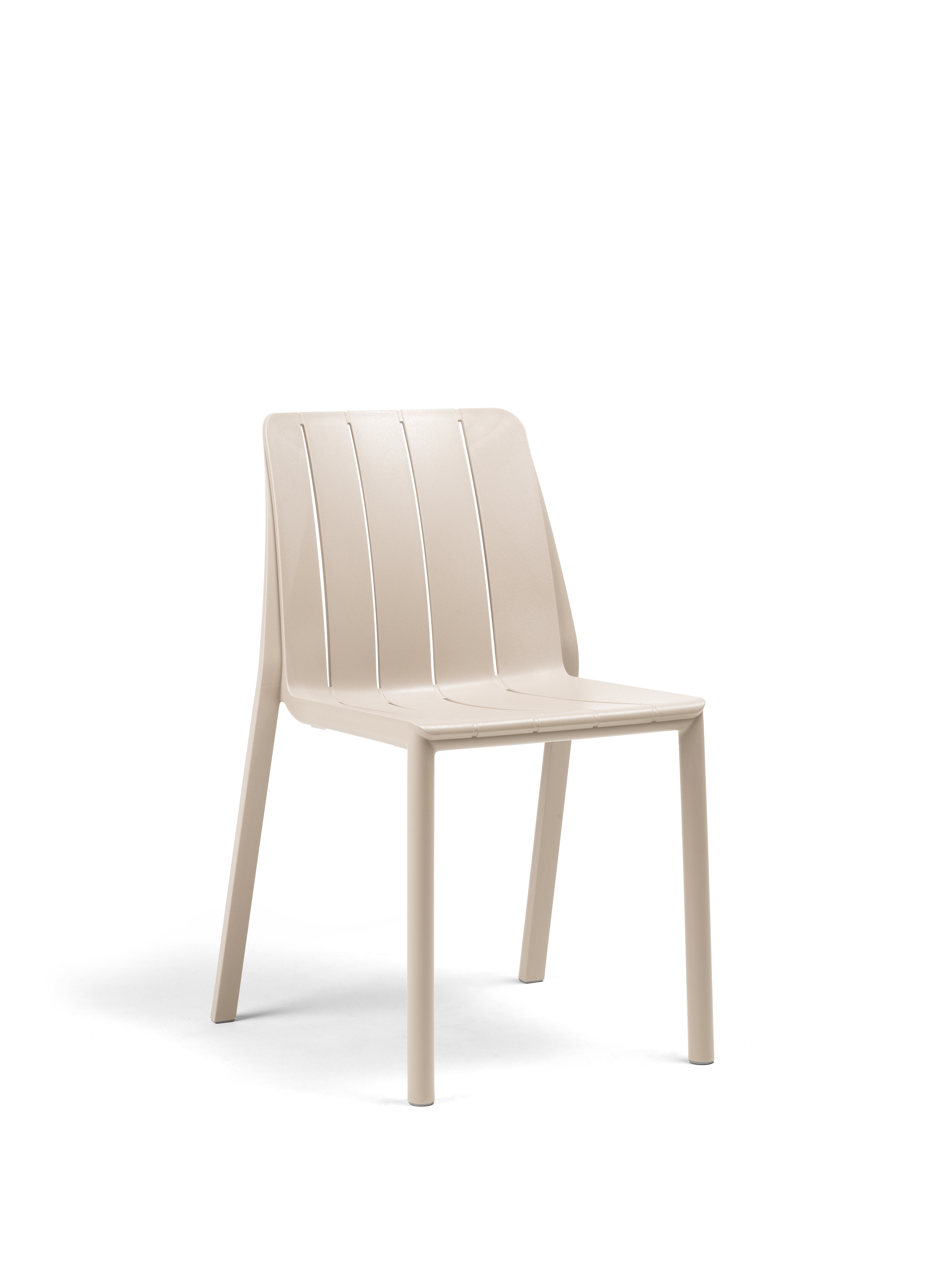 Material: polipropileno fiberglass tratado anti-UV y teñido en masa, efecto mate. Con tapones antideslizantes y apilable.